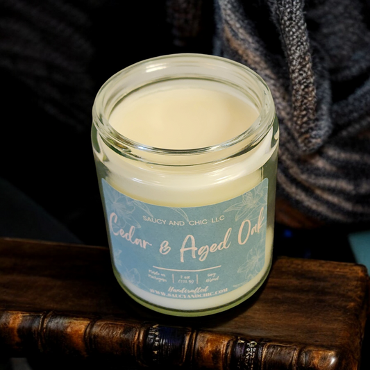 Cedar & Aged Oak Wickless Candle – Classic Woodsy Elegance for Your Space | Saucy and Chic
