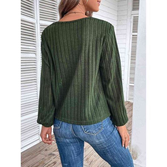 Twisted V-Neck Buttoned Long Sleeve T-Shirt