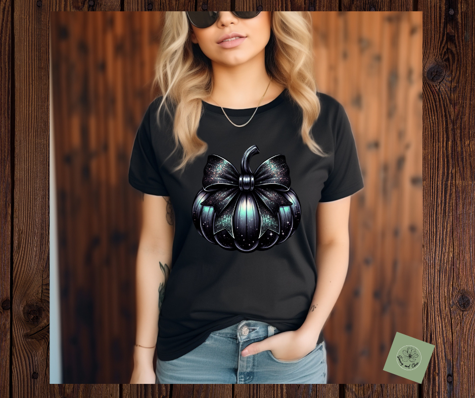 Step up your autumn wardrobe with our Chic Black Pumpkin Shirt! This unique piece features a striking black pumpkin adorned with a playful coquette bow tied neatly around the top. Perfect for Halloween enthusiasts and those who love a touch of whimsy in their fashion, this shirt combines style and festive flair.