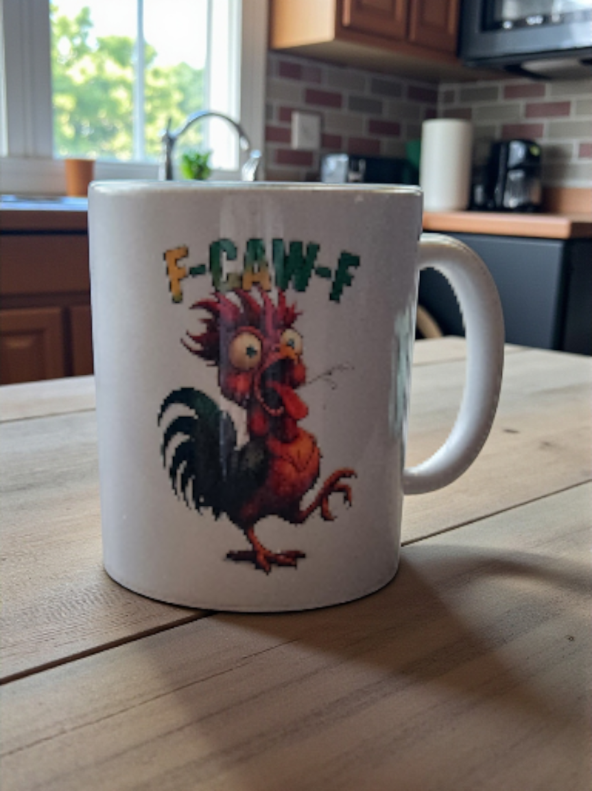 Funny F-Caw-F Rooster Coffee Mug – 11 oz Ceramic Humor Cup for Morning Sass
